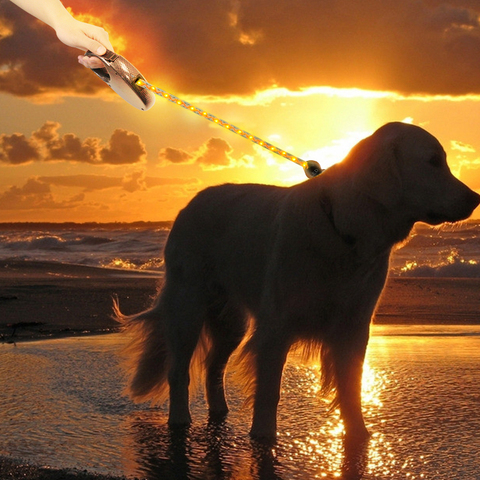 Correa de perro LED recargable por USB estilo de lujo con material de poliéster de luz oscura brillante mango acolchado resistente para caminar de noche