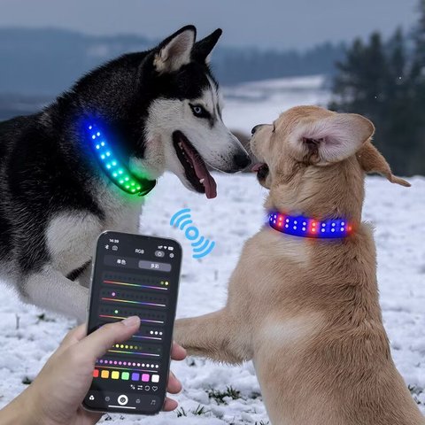 Venta al por mayor de fábrica Teléfono inteligente Aplicación controlada Tira de luz LED Collar de mascota suave se ilumina para paseos nocturnos